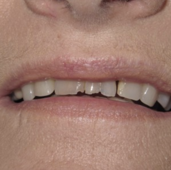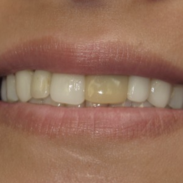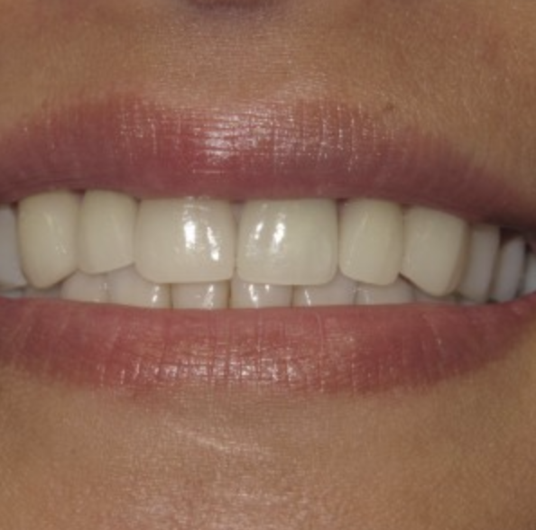 This patient had an awful bridge, they wanted the tooth to match the others and be able to floss in between her front teeth. The bridge was easily removed a single mini implant was placed and the new crown was permanently cemented to the mini implant in just one short visit to the dentist. This is probably the easiest procedure and can make a world of difference to your smile.